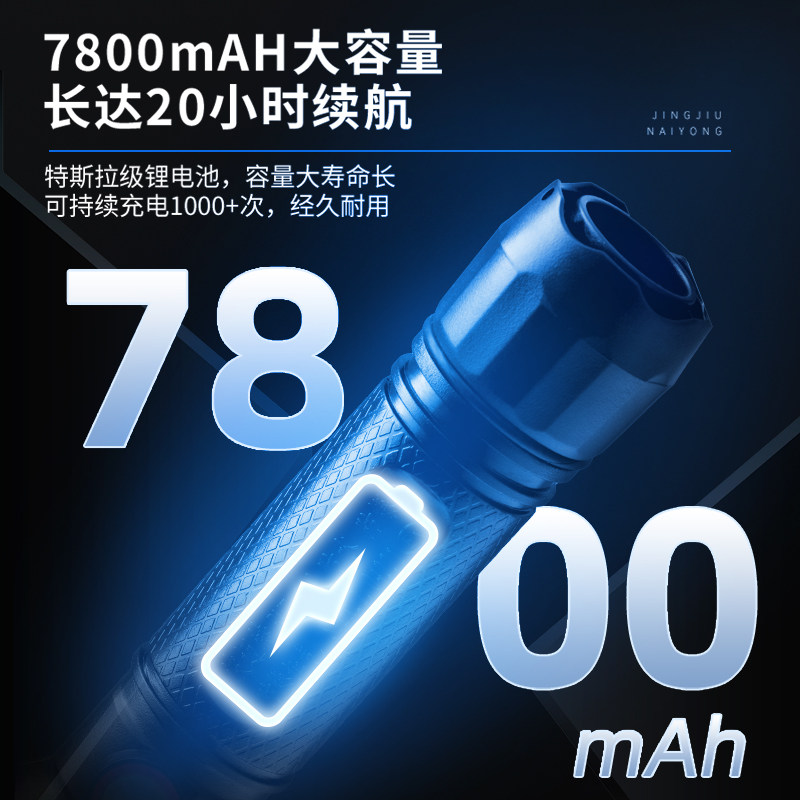 久量强光手电筒LED充电式户外耐用手提灯超亮远射家用应急探照灯