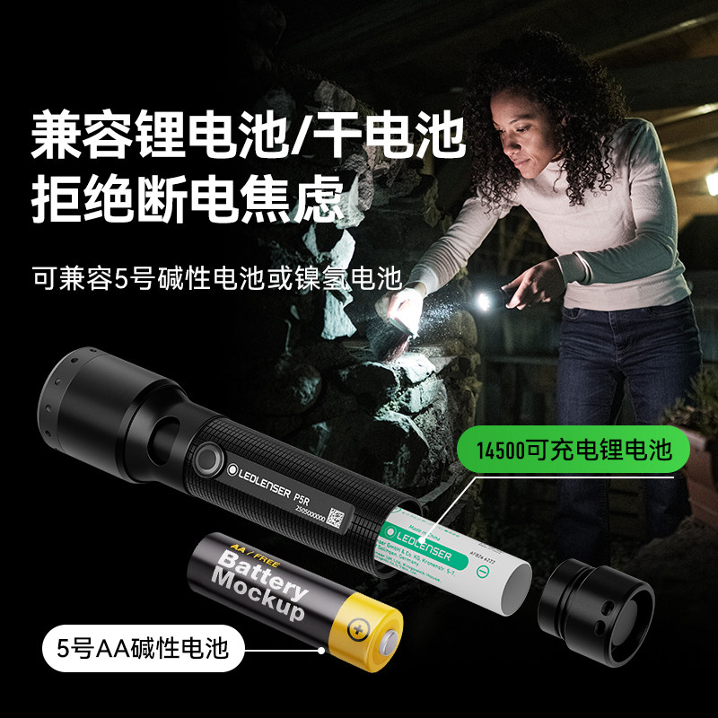 德国莱德雷神P5R应急手电筒是一款高性能户外照明工具,采用高亮LED灯珠,最大亮度可达2000流明,支持强光远射与近光泛光双模式,并具备无极变焦功能,满足不同场景需求。其IP68级防水设计,可在水下2米正常工作,适应暴雨、涉水等恶劣环境。内置可充电锂电池,支持USB-C快充,同时兼容AA干电池,应急时更换方便,续航无忧。航空铝合金机身轻便坚固,抗摔耐磨,握感舒适。无论是户外探险、露营、搜救,还是日常应急备用,P5R都以卓越性能与可靠品质,成为值得信赖的照明伙伴。