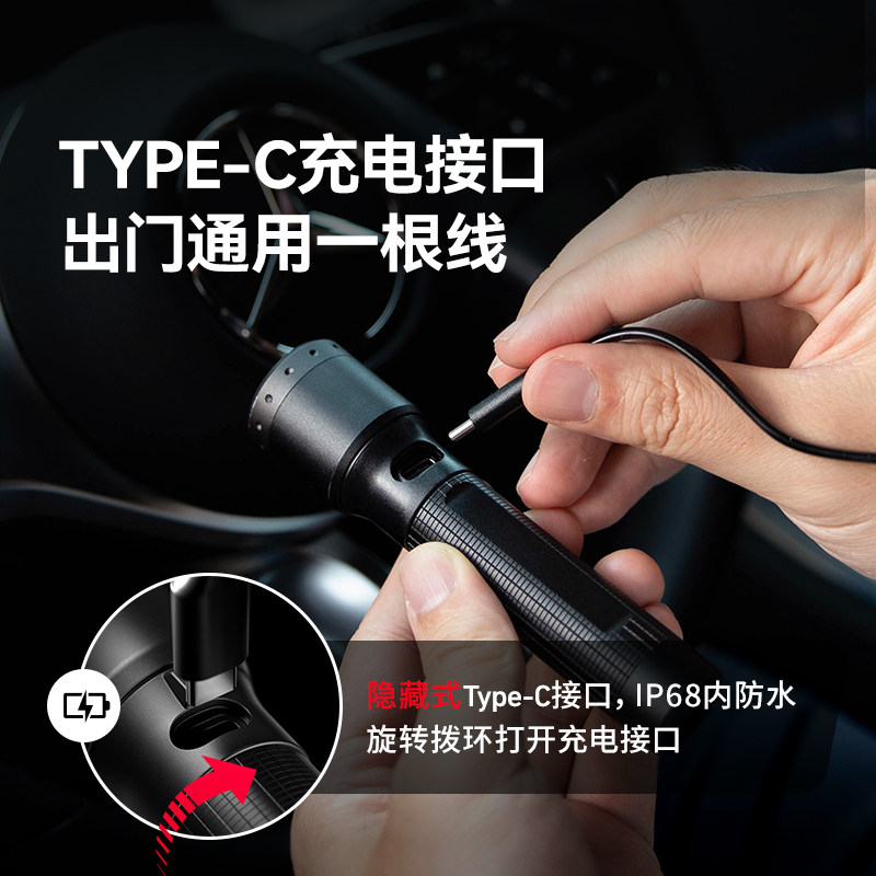 天猫德国莱德雷神P5R应急手电筒高亮强光变焦IP68防水充电兼容干电池