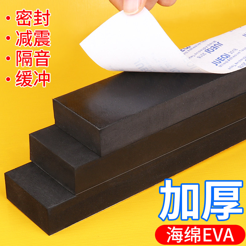 淘宝加厚黑色海绵eva密封条高密度泡棉缓冲减震垫块自粘隔音防撞胶条