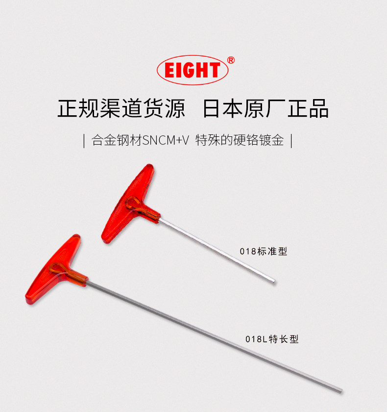 天日本进口EIGHT百利加长T型内六角扳手单个018-3mm内6角螺丝刀工具