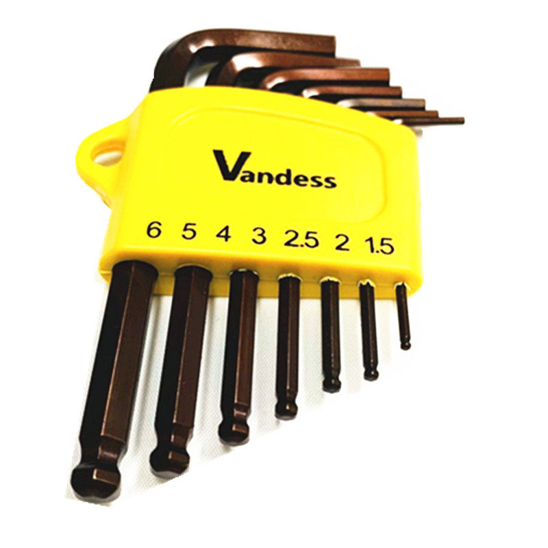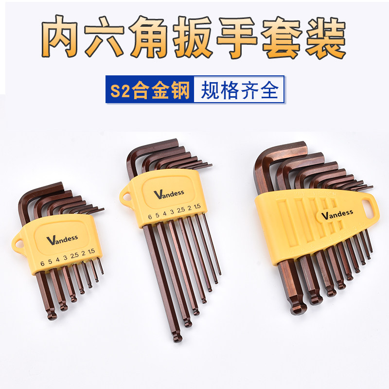台湾超短尾边小迷你球头内六角带孔梅花扳手7件9件防盗狭窄公英制
