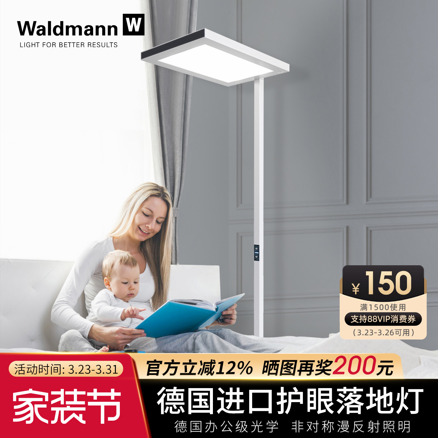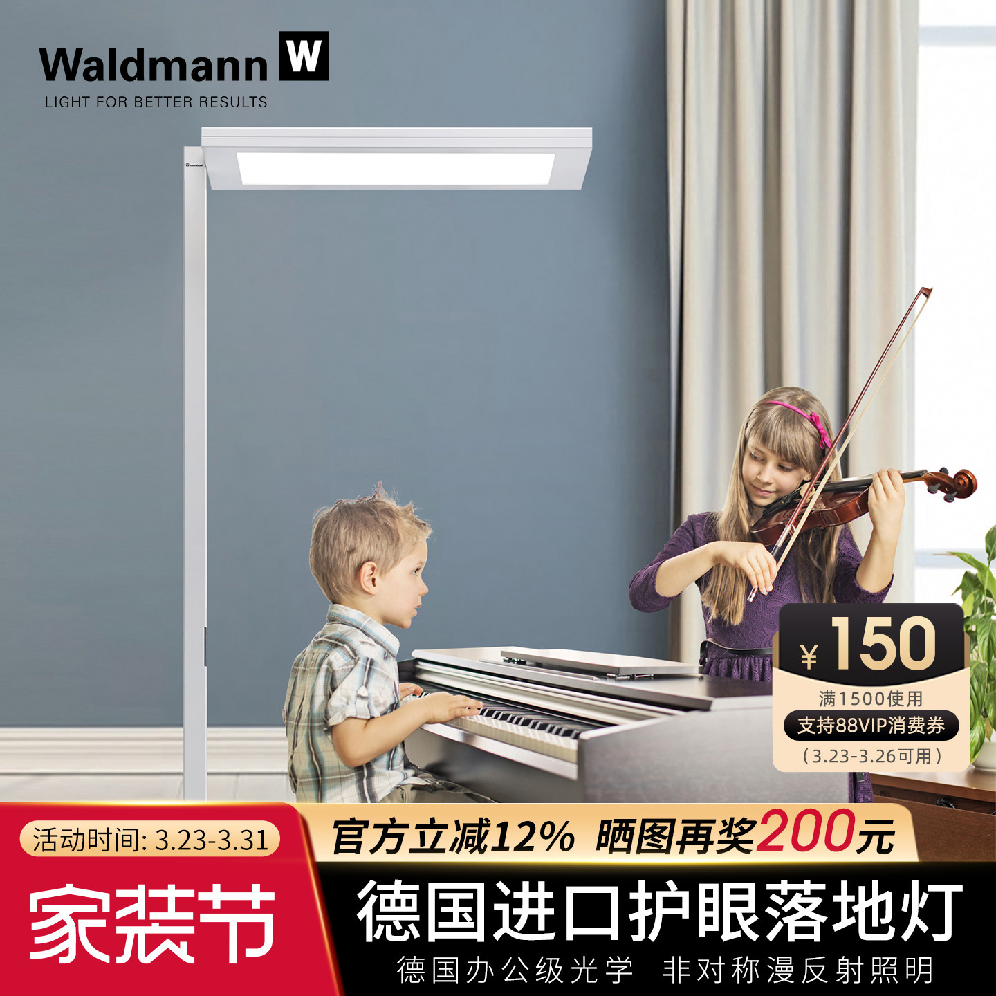 天猫德国进口Waldmann儿童护眼落地灯 沃达迈学生钢琴学习台LED大路灯