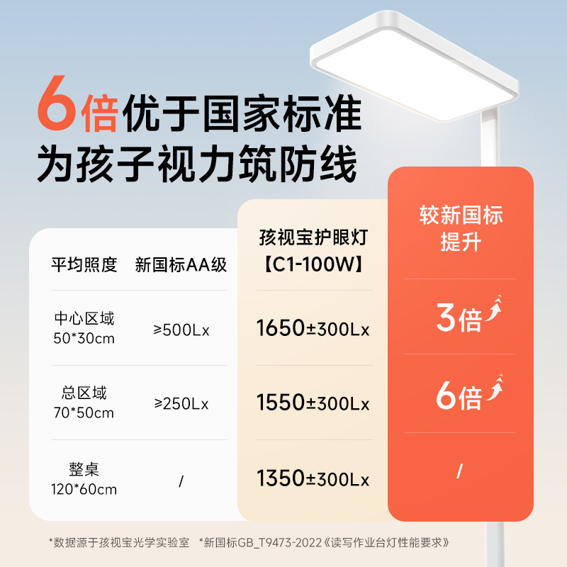 孩视宝官方立式护眼灯是一款专为儿童学习阅读设计的高品质护眼落地灯。采用先进的全光谱LED光源,模拟自然光,无频闪、无蓝光危害,有效缓解用眼疲劳,保护孩子视力健康。灯头可多角度调节,光线均匀覆盖桌面,避免阴影和眩光,营造舒适学习环境。高显色指数(Ra≥95)真实还原色彩,提升阅读专注力。底座稳固,高度适中,适合书桌、客厅或卧室使用。简约时尚设计,兼具实用性与美观性,是孩子长时间学习、阅读的理想照明伙伴,让护眼从一盏好灯开始。