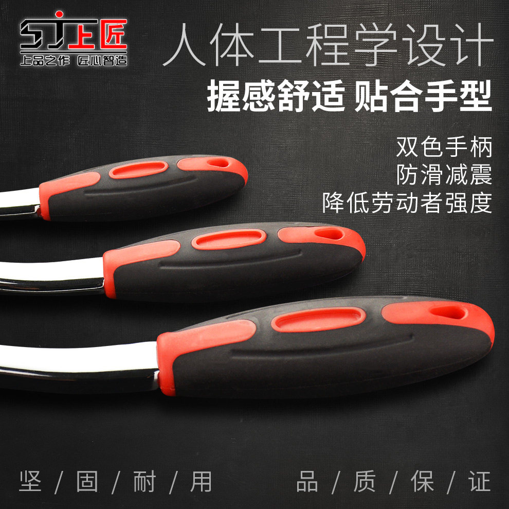 上匠快速棘轮内六角扳手是一款高效实用的五金工具,专为拧紧或拆卸内六角螺丝设计。采用优质合金钢材质,硬度高、耐磨损,确保长久使用寿命。独特的自动棘轮结构,可在狭小空间内实现单向连续旋转,无需反复调整,大幅提升作业效率。平头设计便于精准对位,防滑手柄握感舒适,操作省力。适用于家具组装、机械设备维修、自行车保养等多种场景。结构紧凑、携带方便,是家庭工具箱和专业技工的理想选择。上匠品牌以精工品质著称,此款内六角扳手集实用性与耐用性于一体,助力用户轻松应对各类紧固任务。