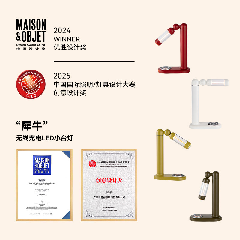 Tubicen犀牛氛围台灯是一款融合创意设计与实用功能的床头灯。灵感源自犀牛造型,线条简约而富有力量感,为卧室增添一抹艺术气息。采用柔和的暖光LED,支持多档调光,营造温馨舒适的氛围感。内置无线充电模块,兼容Qi协议设备,手机随手放上即可充电,便捷高效。触控开关设计,操作灵敏,夜间使用更安心。材质环保耐用,底部防滑稳固,适合现代家居、卧室、书房等多种场景。不仅是照明工具,更是提升生活品质的精致摆件,让科技与美学在夜晚温柔交汇。