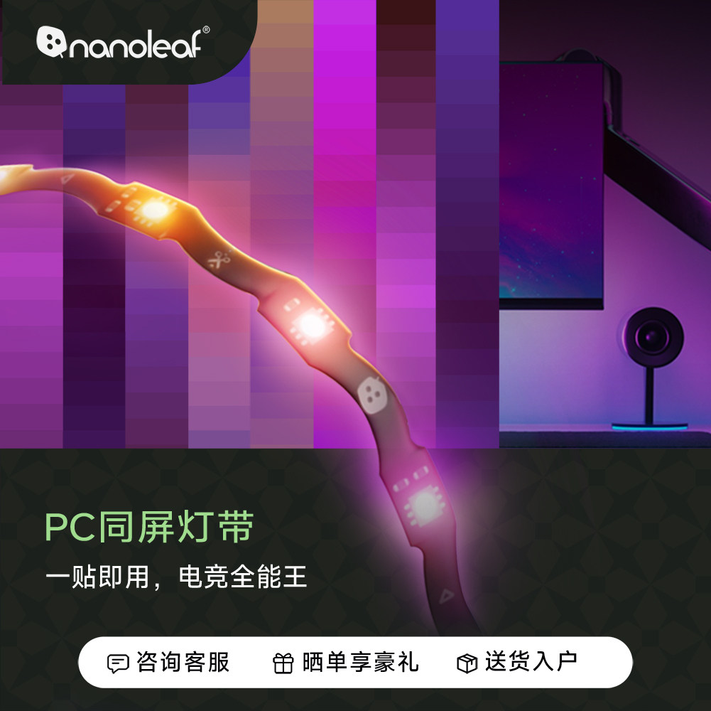 Nanoleaf奇光万物拾光同屏电脑显示器灯带是一款专为电竞玩家与创意工作者打造的RGB氛围灯带,支持与屏幕内容实时同步,实现“拾光同屏”的沉浸式视觉体验。采用高品质LED灯珠,色彩饱满、过渡自然,支持百万级色彩调节与多种动态光效。通过专属App或第三方平台(如Razer Chroma、华硕Aura Sync)实现设备联动,打造统一幻彩灯效系统。柔性灯带设计,可轻松贴合显示器背部,安装简便,不伤屏幕。兼容主流操作系统,支持音乐律动、游戏互动等智能模式,为桌面空间增添科技感与氛围感,是提升电竞体验与家居美学的理想选择。