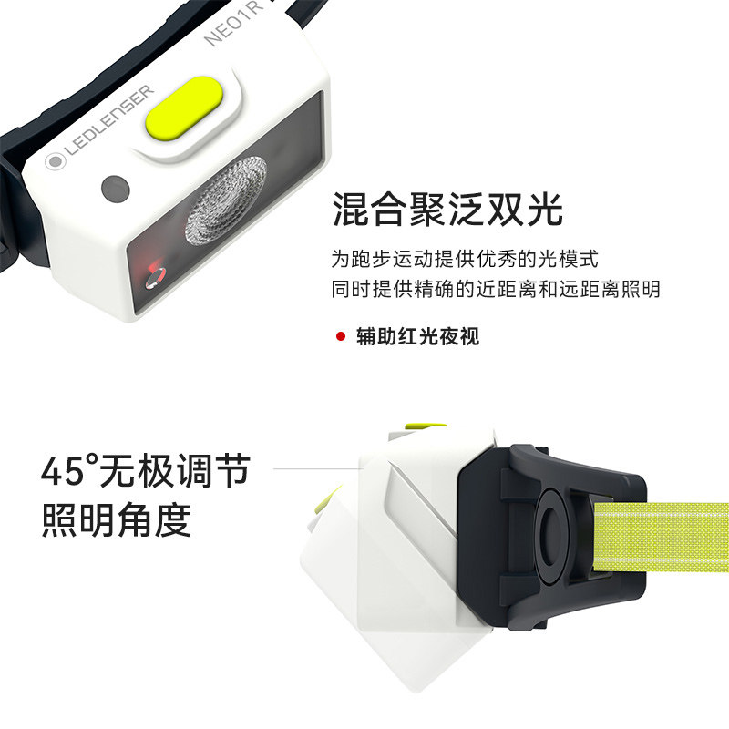 【超轻39g】德国莱德雷神NEO1R头灯,专为户外夜跑、越野跑与登山设计,极致轻量化仅重39克,佩戴无感,久戴不累。采用德国精工光学系统,提供高亮聚光与泛光双模式,最大亮度达400流明,照射距离远达80米,夜间视野清晰开阔。搭载长效锂电池,续航最高可达120小时(节能模式),满足多日户外需求。IPX6级防水设计,无惧风雨恶劣环境。头带采用透气速干材质,贴合稳固,运动时不易滑落。NEO1R集轻量、强光、长续航与可靠防护于一体,是户外爱好者夜间探险的理想照明伙伴。