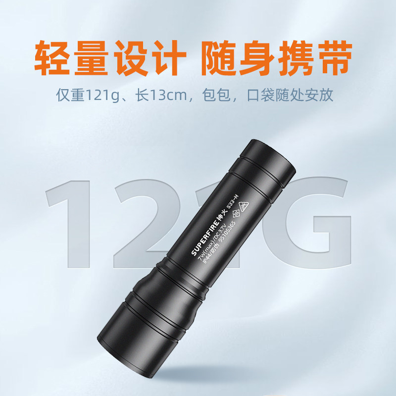 神火S33应急家用充电耐用强光手电筒,是官方旗舰店推出的高性能户外照明利器。采用高亮LED灯珠,最大亮度可达1000流明,远射距离超150米,满足夜间搜救、户外探险等强光需求。内置大容量锂电池,支持USB直充,续航持久,应急情况下亦可作为移动电源使用。机身采用航空铝合金材质,防水防震,坚固耐用,适应各种恶劣环境。小巧便携设计,轻松放入口袋或背包,是家庭应急、露营徒步、户外作业的理想选择。神火S33集强光、远射、耐用、便携于一体,守护您的每一次光明之旅。
