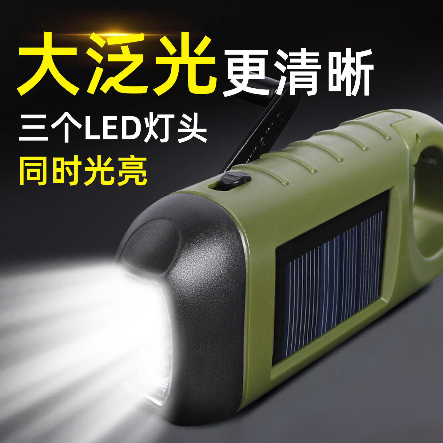 天猫手电筒充电手摇太阳能强光便携超亮家用迷你led灯多功能小型手灯