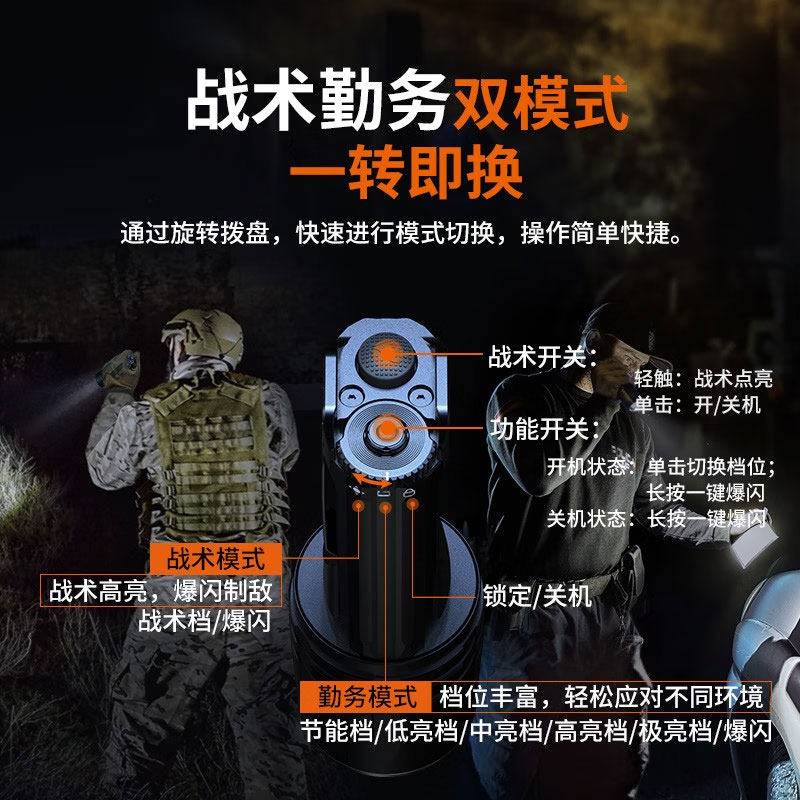TANK007双向照明手电筒磁吸强光远射户外便携旋转照明检修手电WK1