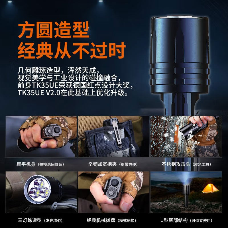 Fenix菲尼克斯TK35UE V2.0是一款专为户外与专业用途设计的高性能强光手电筒,亮度高达3200流明,照射距离远达500米,具备多档调光与爆闪功能,适应夜间徒步、搜救、露营等多种场景。其采用Type-C直充设计,续航持久,操作便捷。特别值得一提的是,TK35UE V2.0配备专业鉴酒模式,通过特定光谱还原酒液真实色泽,帮助品酒师或爱好者精准判断酒体状态。升级版TK35R进一步优化散热与握持体验,兼顾耐用性与便携性。无论是户外探险还是专业品鉴,TK35系列都以卓越性能与多功能性,成为值得信赖的照明利器。