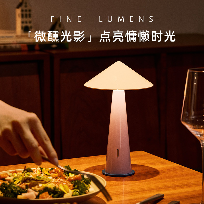天猫Tipsy小斗笠灯氛围台灯轻奢高级充电床头小夜灯蘑菇灯FineLumens