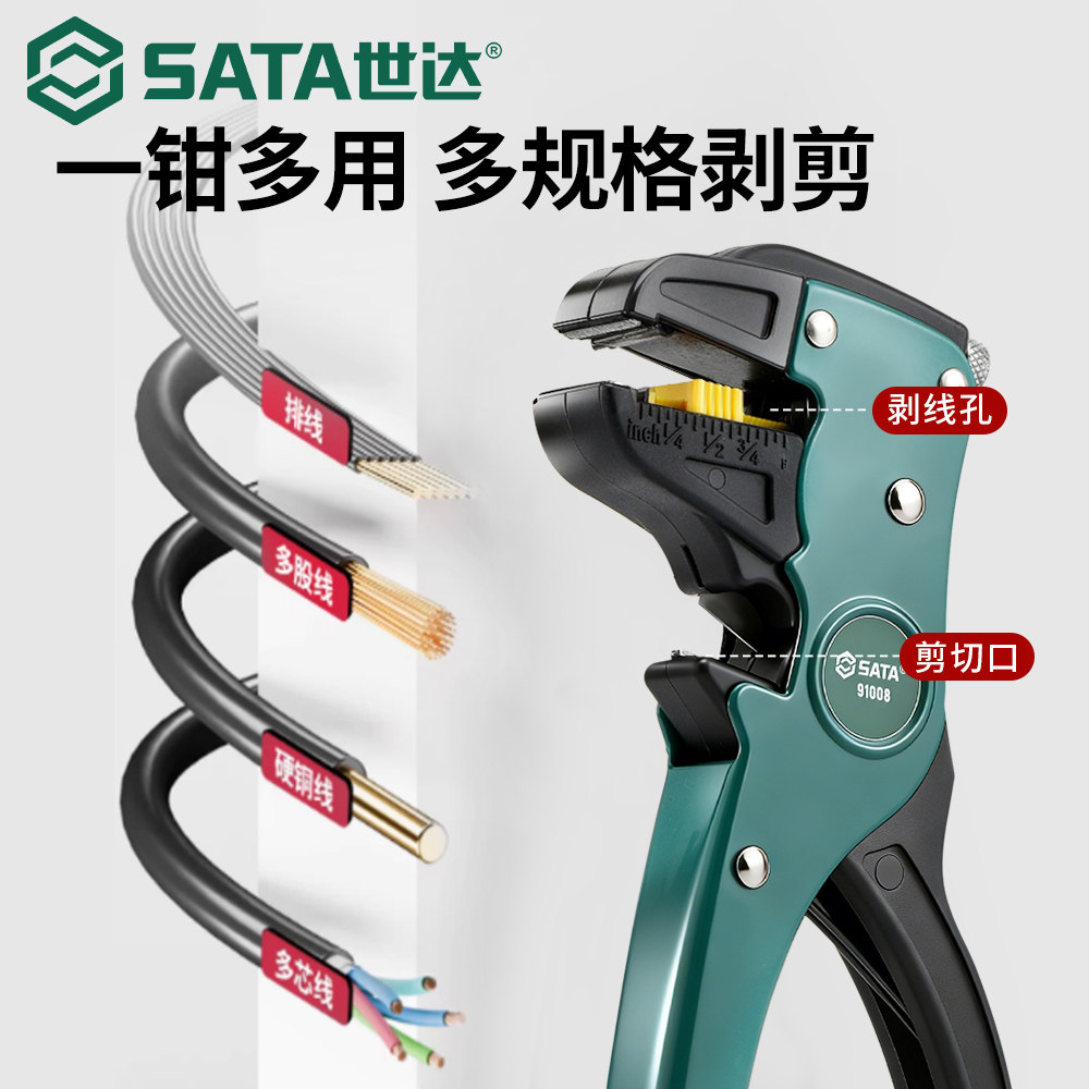 世达自动剥线钳电工专用工具开线钳工业级拔线剪钳剥皮钳子91212