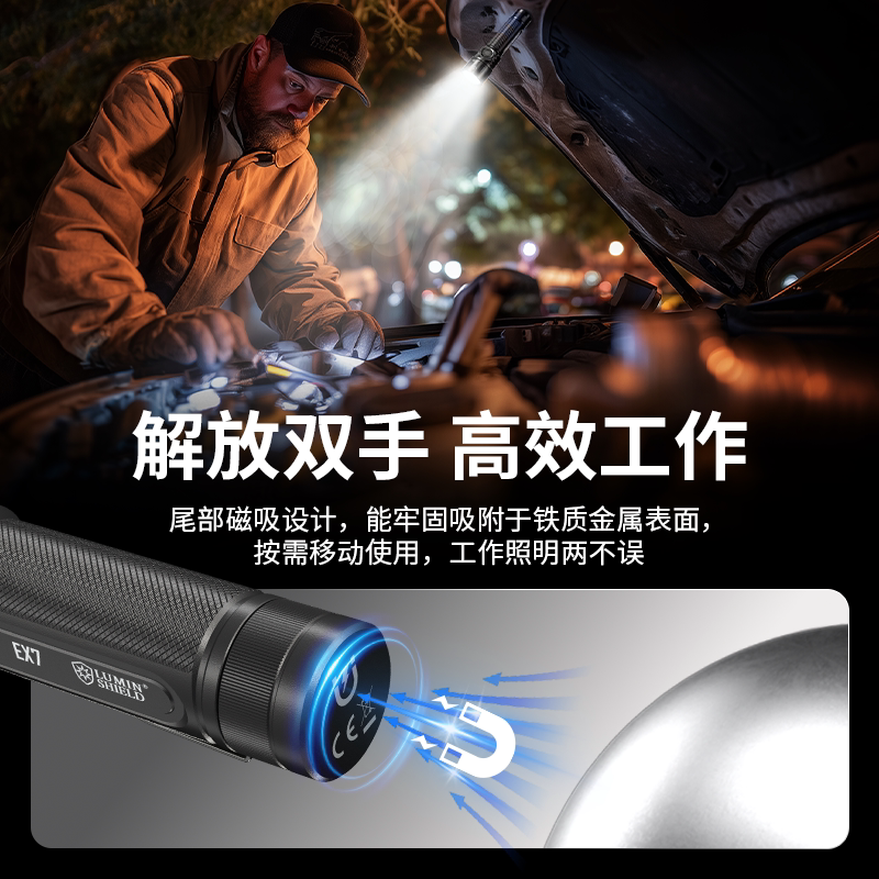 TANK007双向照明手电筒磁吸强光远射户外便携旋转照明检修手电WK1
