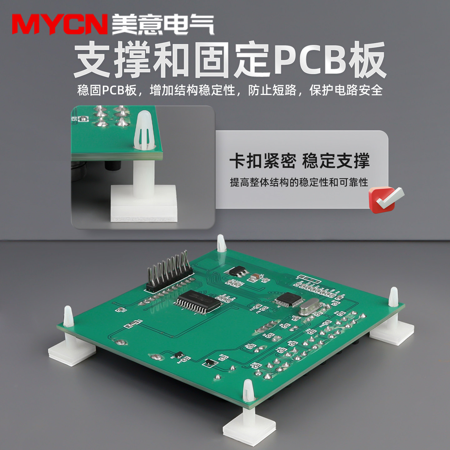 PCB板粘贴式隔离柱固定座是一种用于电脑主板及各类电路板安装的高精度定位配件。采用高强度工程塑料或金属材质制成,通过底部强力胶贴或卡扣结构牢固粘接于机箱或基板表面,实现电路板的稳定支撑与精准定位。其插销式设计便于快速安装与拆卸,有效隔离PCB板与金属底板,防止短路,同时提升散热性能与抗震能力。广泛应用于计算机主板、工控设备、通信模块等电子系统中,具有安装简便、绝缘可靠、空间利用率高等优点,是现代电子设备中不可或缺的固定与支撑组件。