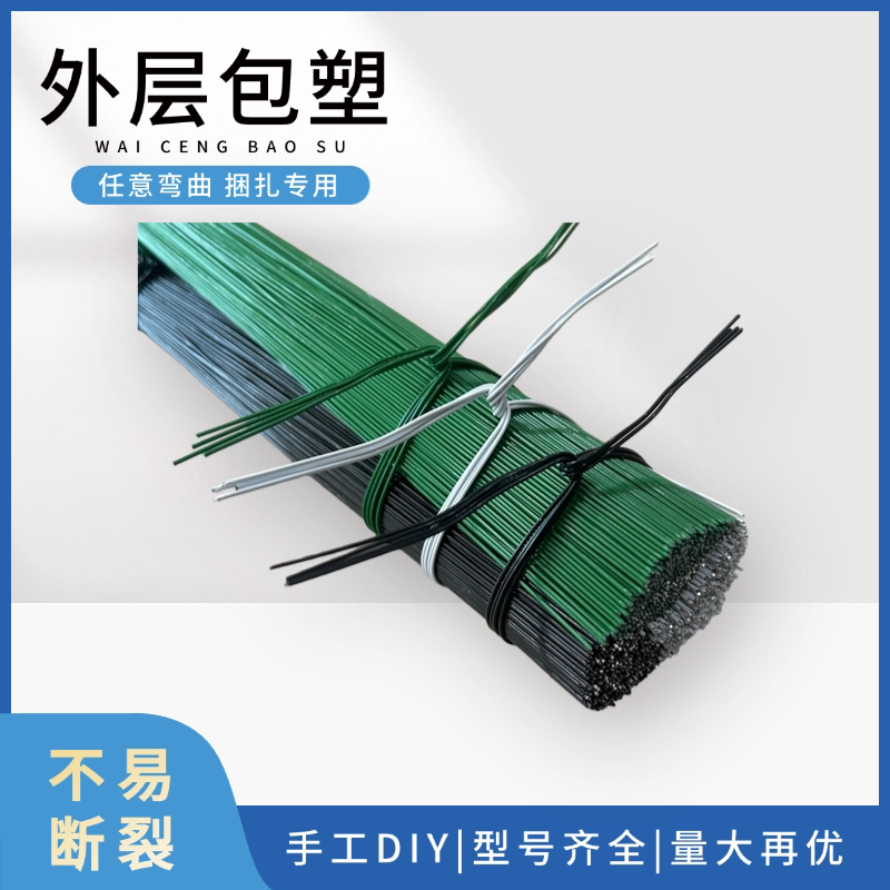 包塑铁丝扎带捆绑丝金属扎丝防锈花艺造型软铁丝固定绑带带皮绑丝