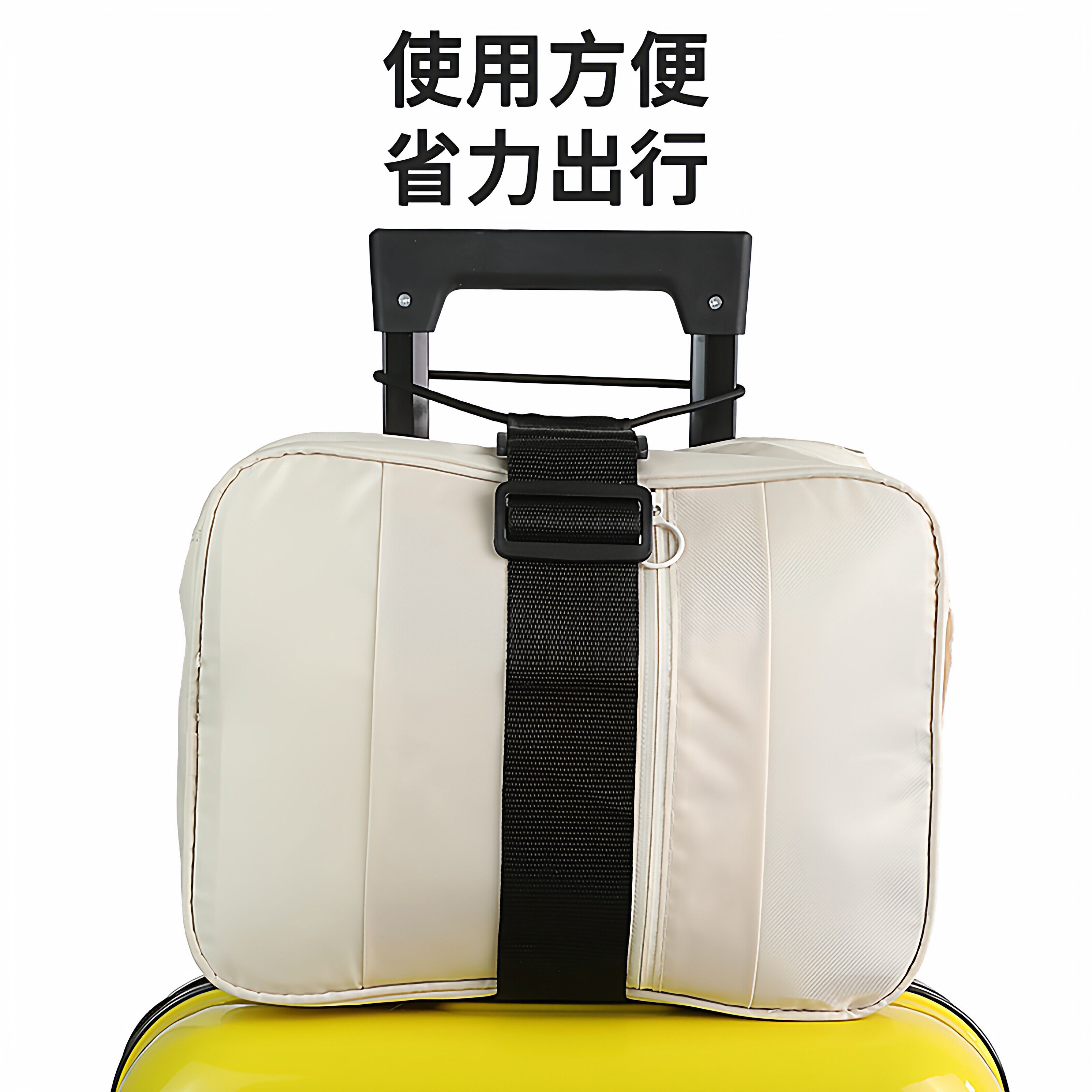 行李箱固定绑带双肩包旅行箱捆绑带是一款实用的旅行配件,采用高弹耐磨材质制成,兼具韧性与耐用性。它可用于固定双肩包、手提袋或额外行李于拉杆箱顶部,有效防止物品滑落或散落,提升出行安全与便利。弹力设计适配不同尺寸的行李箱和背包,松紧自如,捆扎牢固。部分款式配有调节扣,可自由调节长度,满足多种使用场景。轻便易收纳,不占空间,是长途旅行、出差或家庭出游的理想助手。无论是应对颠簸路况还是机场托运,这款捆绑带都能让您的行李井然有序,出行更安心。