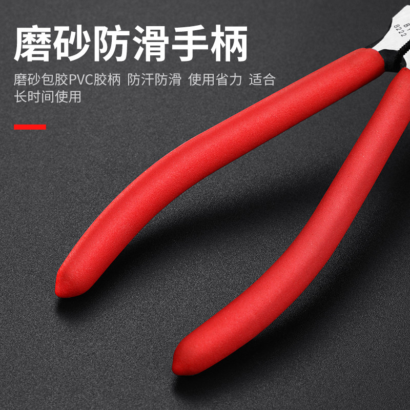 邦远斜口钳是一款高品质精密工具,专为电子加工、模型制作及精细作业设计。其5寸电子如意钳和6寸偏口钳均采用优质合金钢材质,经加硬热处理,具备出色的耐磨性和抗腐蚀性,刃口锋利,剪切精准。德国工艺标准打造,确保钳身结构坚固、手感舒适,长时间使用不易疲劳。特别适用于剪断细小金属线、塑料水口及电子元器件引脚。钳口经过精细研磨,闭合紧密,剪切面平整无毛刺。无论是专业维修人员还是手工爱好者,邦远斜口钳都能提供稳定可靠的性能表现,是工具箱中不可或缺的精密利器。
