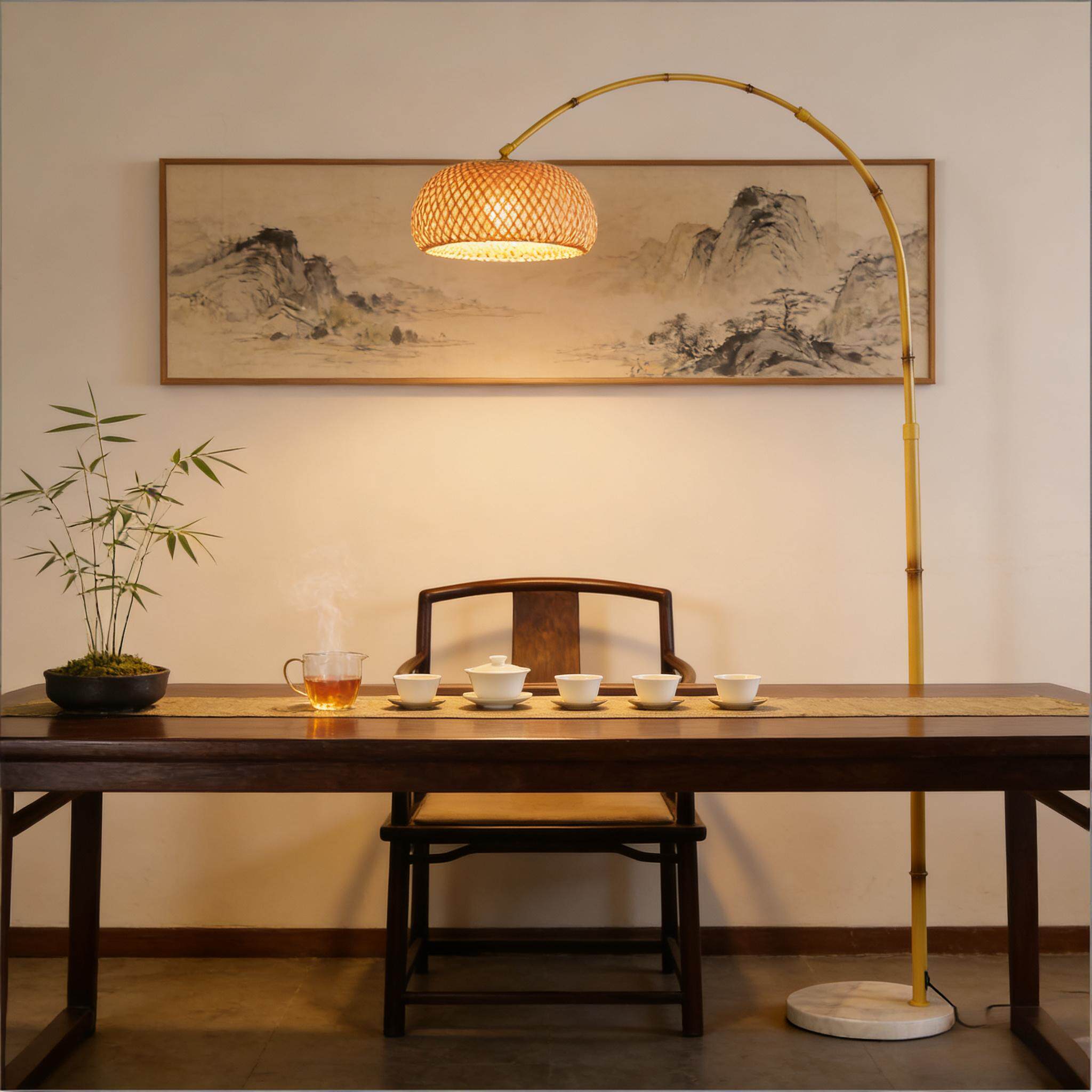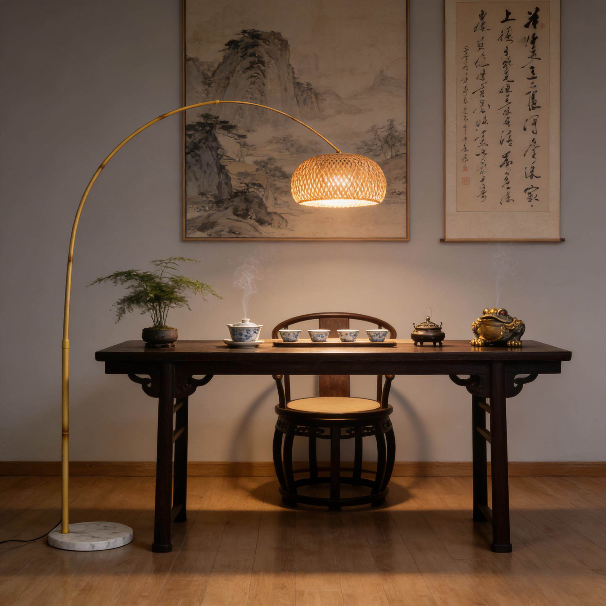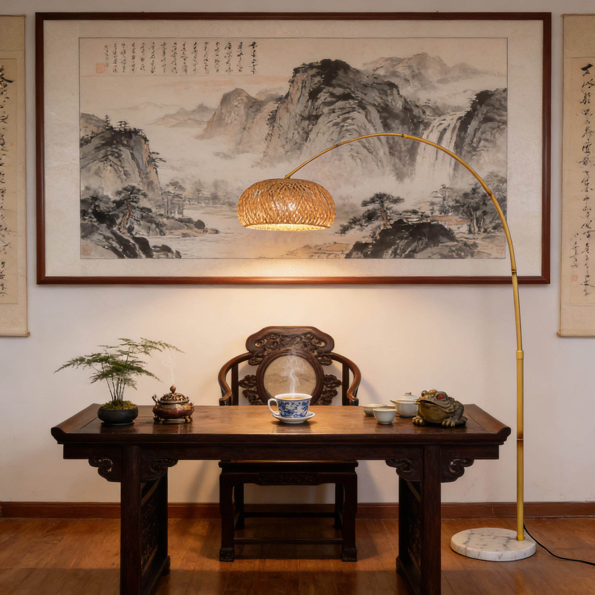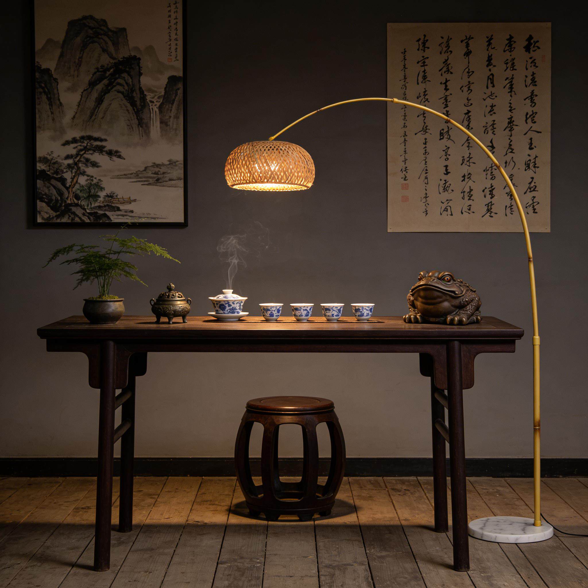 天猫侘寂风落地灯新中式复古禅意客厅书房茶室护眼氛围立式台灯钓鱼灯