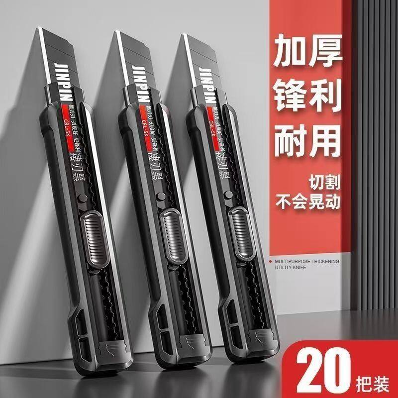 重型美工刀大号加厚壁纸刀,专为高强度作业设计,适用于电工、装修、快递开箱及裁纸切割等多种场景。刀身采用加厚高碳钢材,坚固耐用,抗冲击性强,刀刃锋利持久,可轻松应对壁纸、纸箱、塑料、皮革等硬质材料。人体工学防滑手柄设计,握感舒适,操作安全省力。配备安全锁扣与可伸缩刀片结构,使用便捷且保障安全。多段式刀片设计,钝后可逐段折断,延长使用寿命。无论是专业施工还是日常家用,这款介刀都能高效完成精细或粗重切割任务,是工具箱中的得力助手。