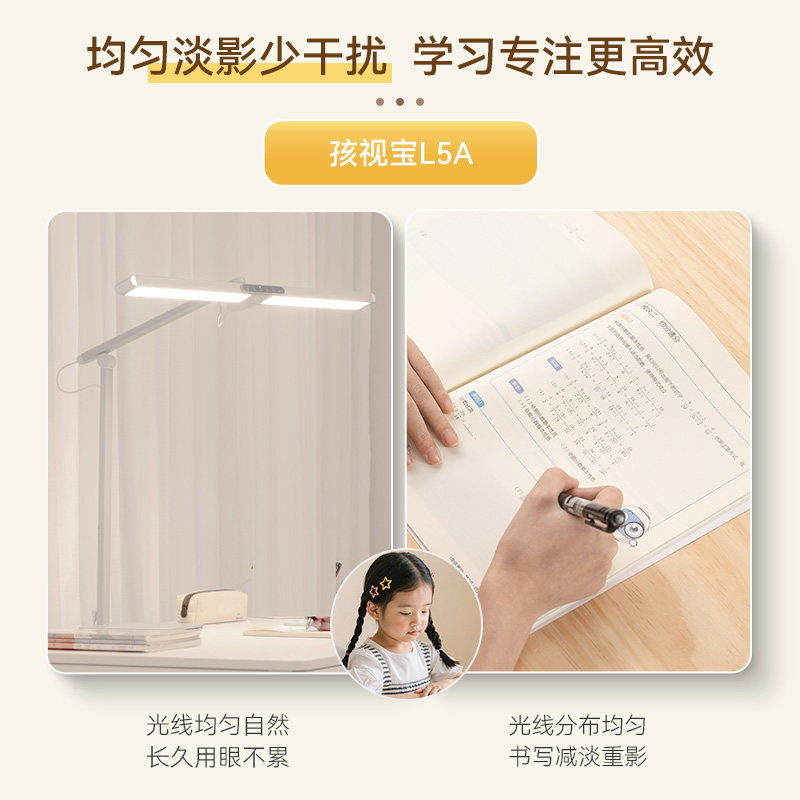 李佳琦直播间推荐的孩视宝L5A学习专用护眼灯,专为学生儿童设计,守护孩子明亮双眸。采用全光谱LED光源,光线柔和均匀,接近自然光,有效减少蓝光危害,缓解用眼疲劳。灯头可多角度调节,满足不同学习场景需求,无论是床头阅读、写作业还是绘画,都能提供舒适照明。通过国家AA级照度标准,无频闪、无眩光,营造健康光环境。简约时尚外观,适配多种家居风格。在李佳琦直播间,这款高性价比护眼灯备受家长青睐,是孩子学习成长路上的贴心伙伴,让护眼从一盏好灯开始。