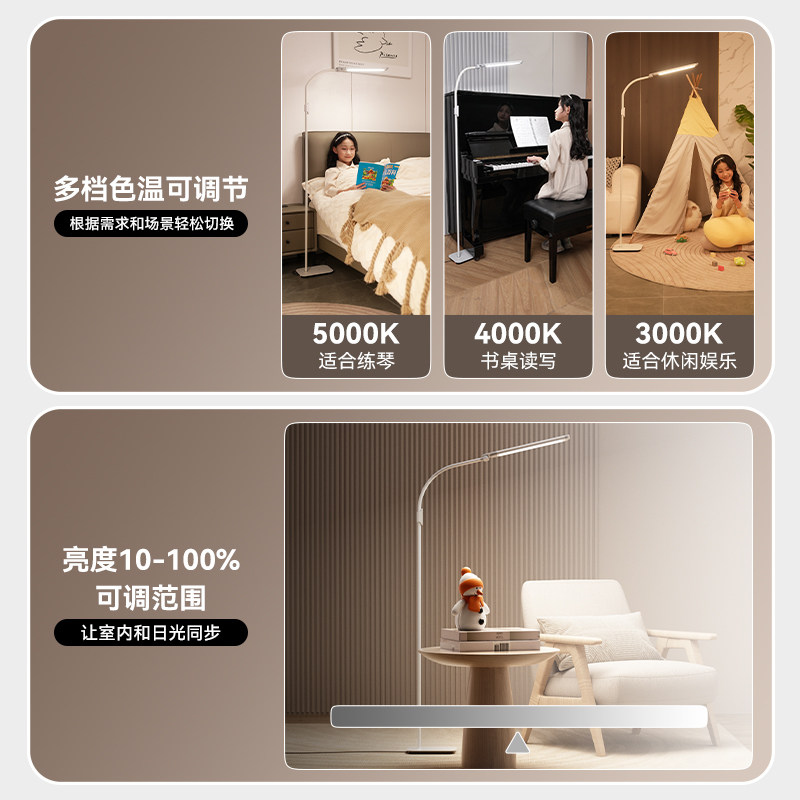 孩视宝官方落地灯是一款专为儿童学习、阅读及钢琴练习设计的全光谱护眼灯。采用先进的全光谱LED技术,模拟自然光,显色指数高达Ra95以上,色彩真实还原,有效减少视觉疲劳。灯头可多角度调节,光线均匀柔和,无频闪、无蓝光危害,为孩子提供健康照明环境。适用于书桌、床头、钢琴旁等多种场景,满足学习、阅读与练琴需求。底座稳固,操作简便,支持多档亮度调节,智能触控设计贴心实用。孩视宝专注护眼照明多年,致力于为孩子打造安全、舒适的光环境,是家长信赖的护眼之选。