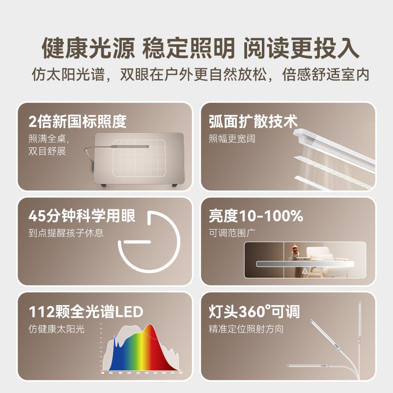 孩视宝护眼大路灯D1儿童全光谱学习专用阅读台灯桌面书桌小落地灯