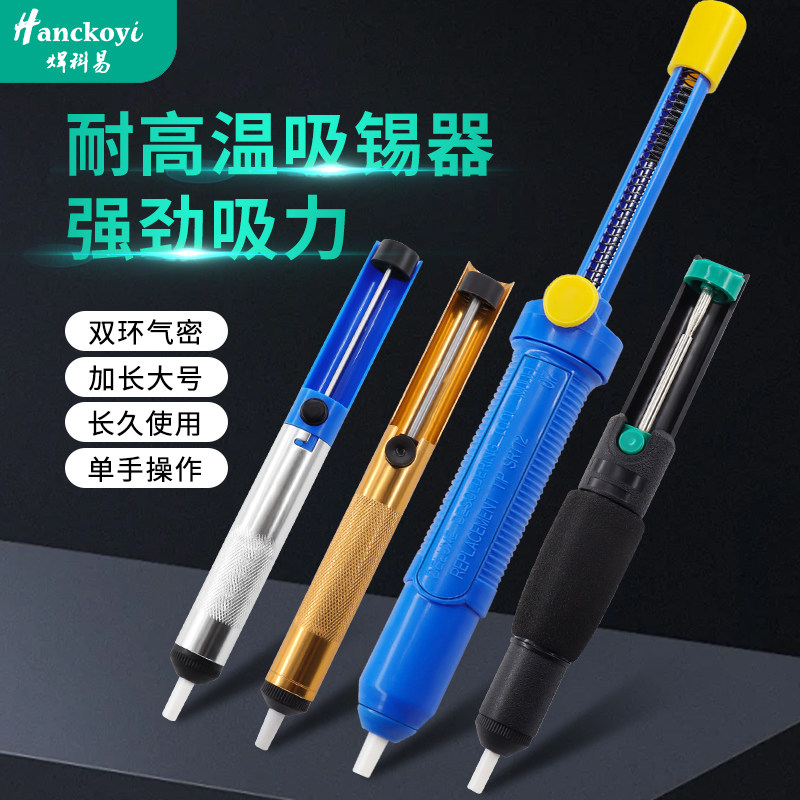 强力吸锡器(又称吸锡枪或手动吸锡泵)是电子维修中常用的拆焊工具,专为快速清除焊点上的多余焊锡而设计。其采用高强度真空原理,通过手动按压蓄力、释放瞬间产生负压,高效吸取熔化的焊锡,适用于电路板维修、元件更换等精密操作。加长型设计便于深入狭小空间,提升操作灵活性。配合烙铁使用,可显著提升拆焊效率与成功率。主体通常采用耐高温材料制成,结构坚固耐用,吸嘴可更换,适配不同焊点需求。无论是家电维修、手机主板修复,还是DIY电子制作,强力吸锡器都是不可或缺的高效工具,确保焊点清洁、避免损伤PCB板。