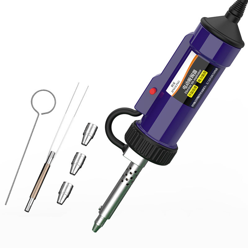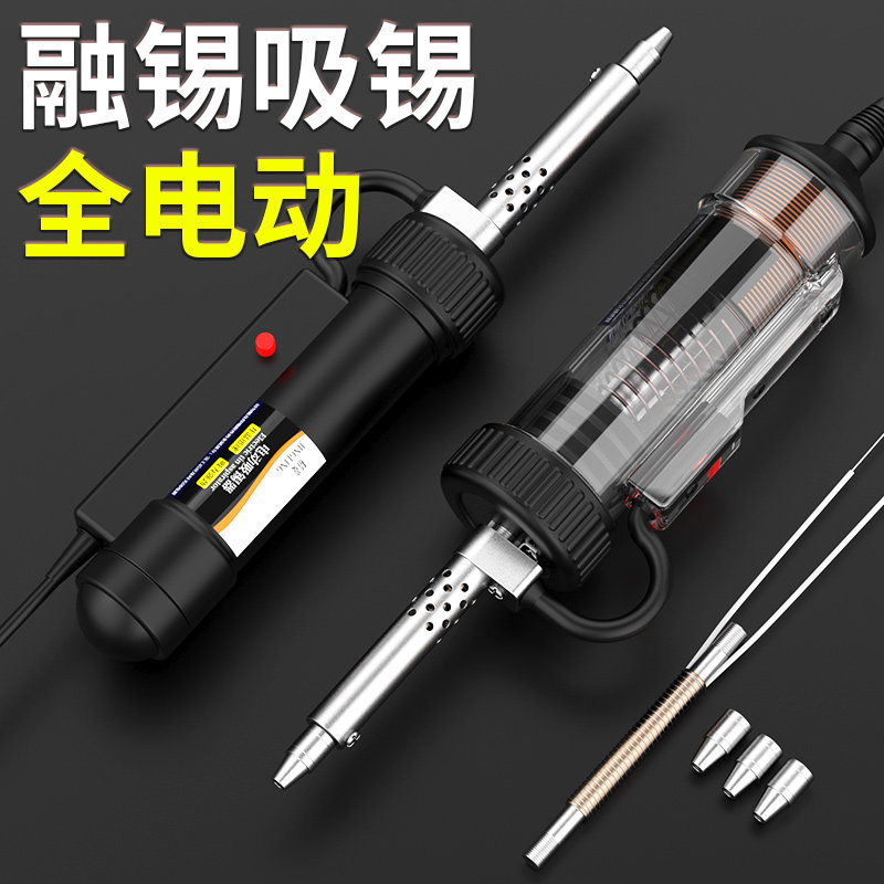 电动强力吸锡器电烙铁是一款集加热、溶锡与吸锡功能于一体的高效拆焊工具,适用于电子维修、电路板焊接等家用及专业场景。其内置高效电热元件,可快速升温至适宜温度,精准熔化焊点;配合真空泵强力抽吸设计,能迅速清除熔融焊锡,操作简便、干净利落。设备采用人体工学设计,握持舒适,配备多规格吸嘴,适配不同焊点需求。双用功能实现溶锡与吸锡同步完成,大幅提升拆焊效率,避免传统方法对元件和电路板的损伤。安全耐高温材料确保使用稳定,是电子爱好者和维修人员的理想选择。