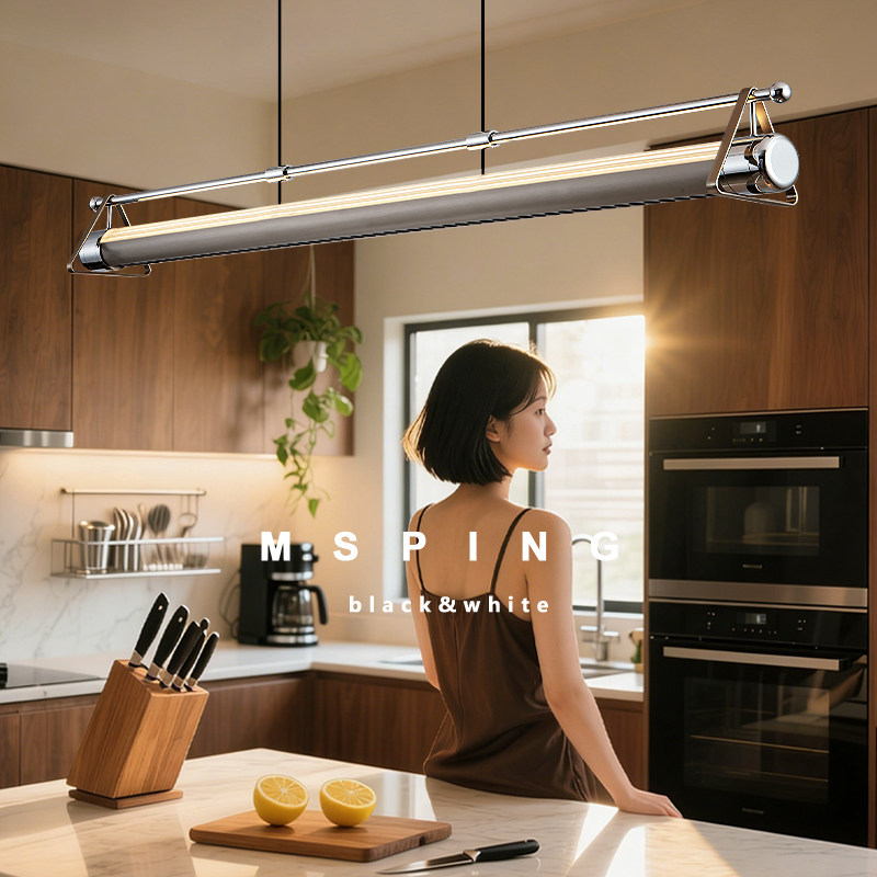 2025款械光灯轻奢现代简约一字长条吧台岛台餐厅吊灯,以极简线条勾勒高级质感,融合现代美学与实用照明。采用优质铝合金材质,表面经细腻阳极氧化处理,呈现哑光或金属质感,低调中彰显奢华。灯体呈流畅一字型设计,适配各种吧台、岛台及餐厅空间,提供均匀柔和的3000K-4000K可调光照明,营造温馨而精致的用餐氛围。支持智能调光与APP控制,操作便捷。安装灵活,适配不同层高,兼具装饰性与功能性。无论是现代家居、咖啡厅或商业空间,这款吊灯都能成为视觉焦点,诠释轻奢生活的简约之美。