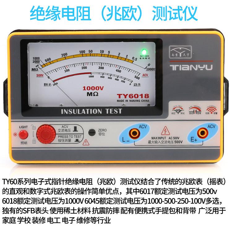 淘宝南京天宇TY6017 TY6018 TY6045型绝缘电阻表兆欧表500V 1000V摇表