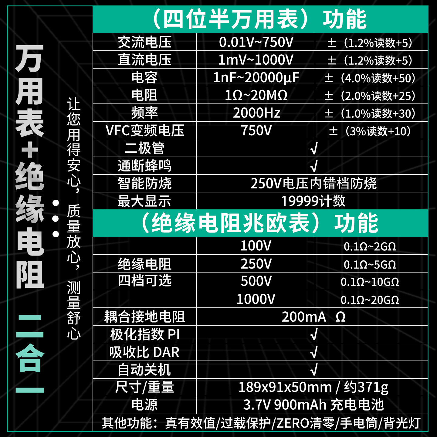 天猫福仪高精度数字万用表兆欧表二合一电工专用绝缘电阻测试仪多用表