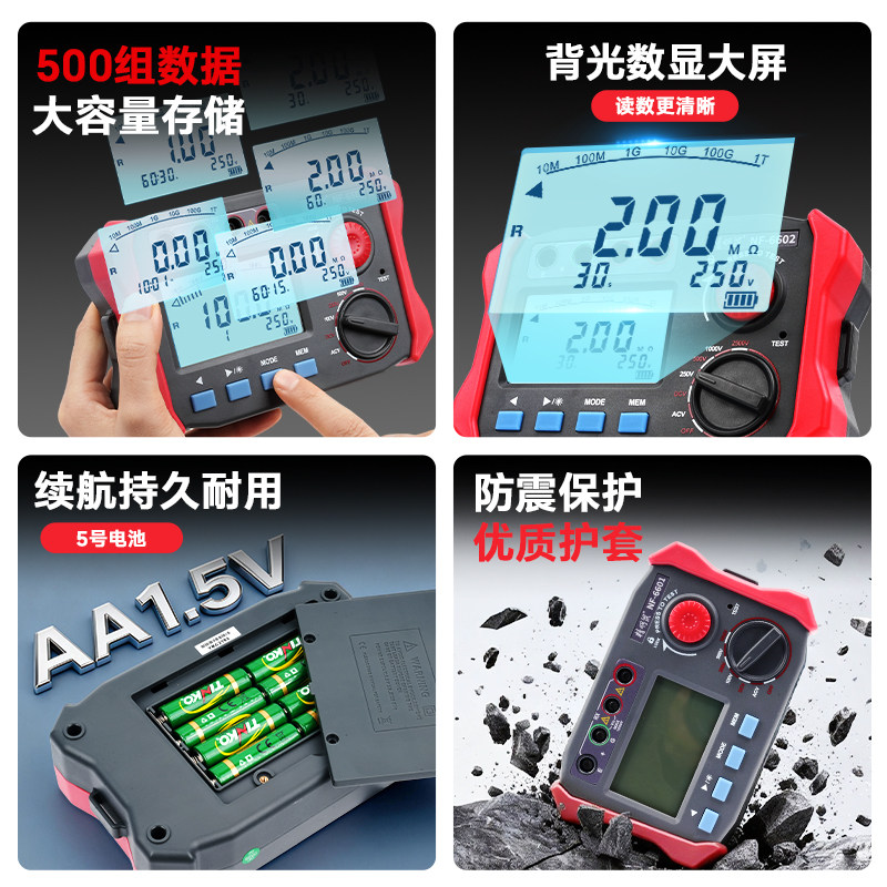 天猫精明鼠NF-6601兆欧表绝缘电阻1000V精准电子数显示电工摇表测试仪