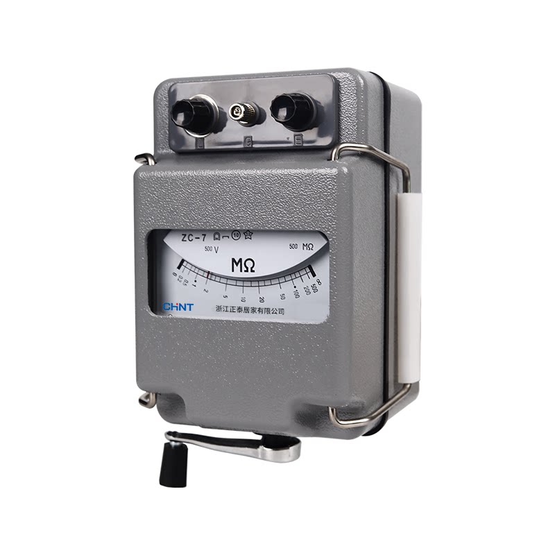 正泰摇表ZC-7是一款专业级电工绝缘电阻测试仪,提供500V、1000V和5000V三种输出电压,适用于多种电气设备与线路的绝缘性能检测。该兆欧表采用手摇发电机或电子升压技术,输出稳定,测量精度高,可广泛应用于电力系统、电机、变压器、电缆及家用电器等领域的绝缘电阻测试。其指针式表盘设计清晰直观,具备短路电流大、抗干扰能力强等特点,确保在复杂工况下仍能获得可靠读数。正泰品牌保障品质,ZC-7结构坚固、操作简便,是电工检修、设备维护及工程验收的理想工具,符合国家标准,安全可靠,深受专业用户信赖。