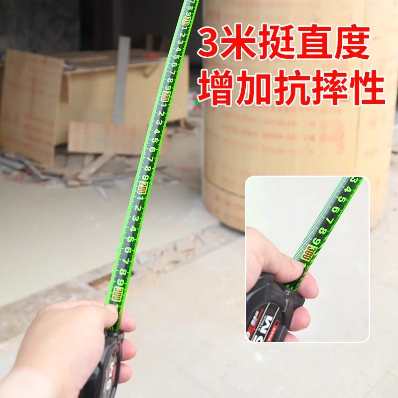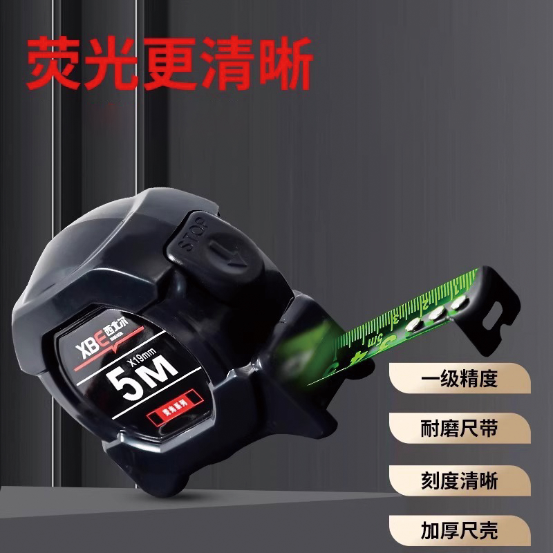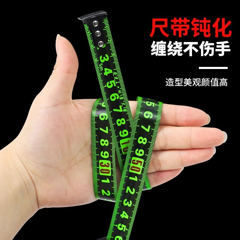 黑荧光尺带科高精卷尺是一款专为家用及工程测量设计的耐用型卷尺,提供5米、7.5米和10米多种规格。采用加厚技钢材质,具备出色的抗摔性和耐磨性,有效延长使用寿命。尺带表面覆有黑荧光涂层,夜间或光线不足环境下清晰可见,提升测量便利性。高精度刻度印刷,确保读数准确无误。内置强力弹簧回卷系统,收放顺畅不卡顿,搭配防滑手柄设计,握持舒适稳固。无论是家庭装修、木工测量还是户外作业,都能胜任,是集实用、耐用与精准于一体的高品质测量工具。
