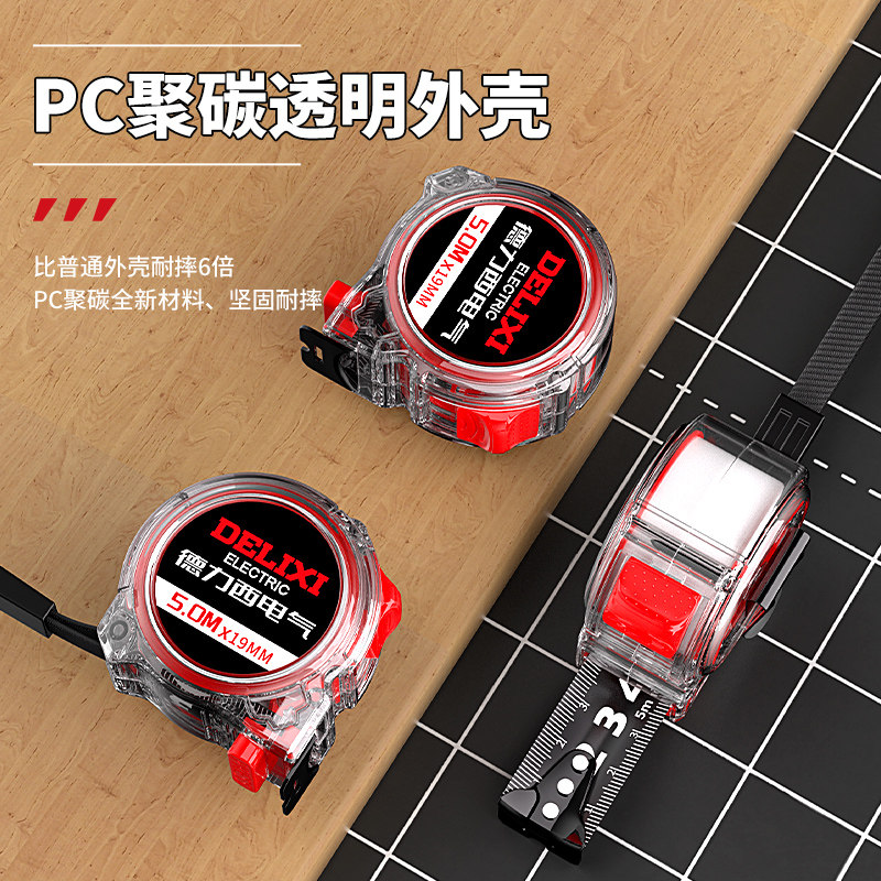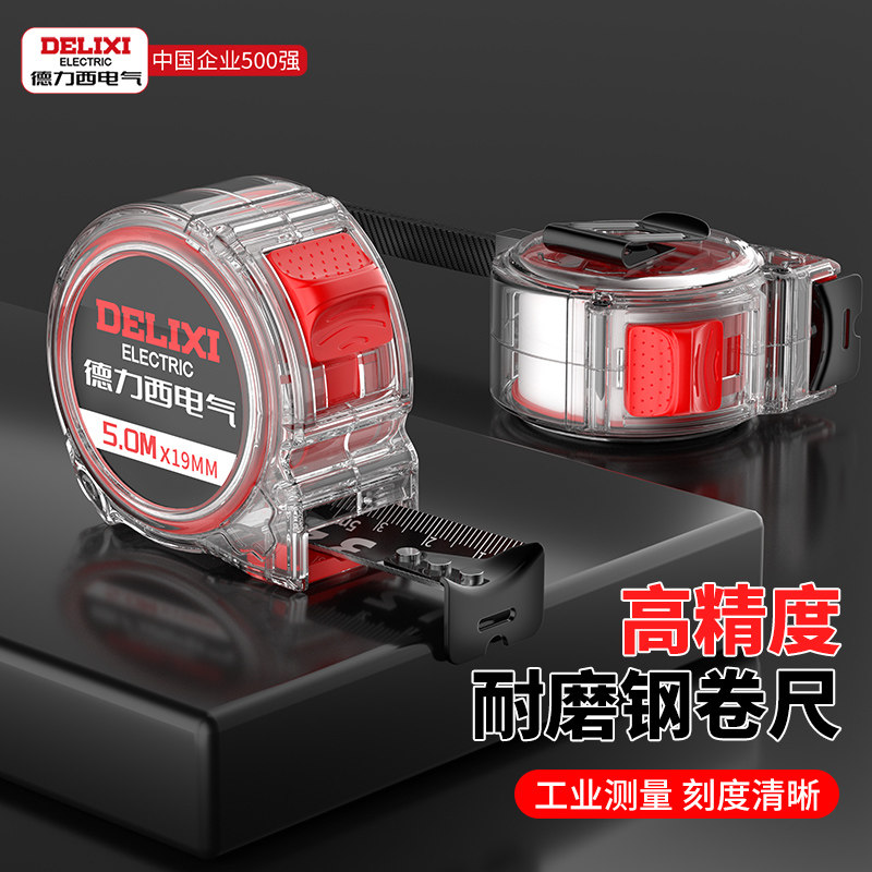 天猫德力西电气卷尺加厚加硬米尺家用高精度耐磨抗摔量尺透明量具