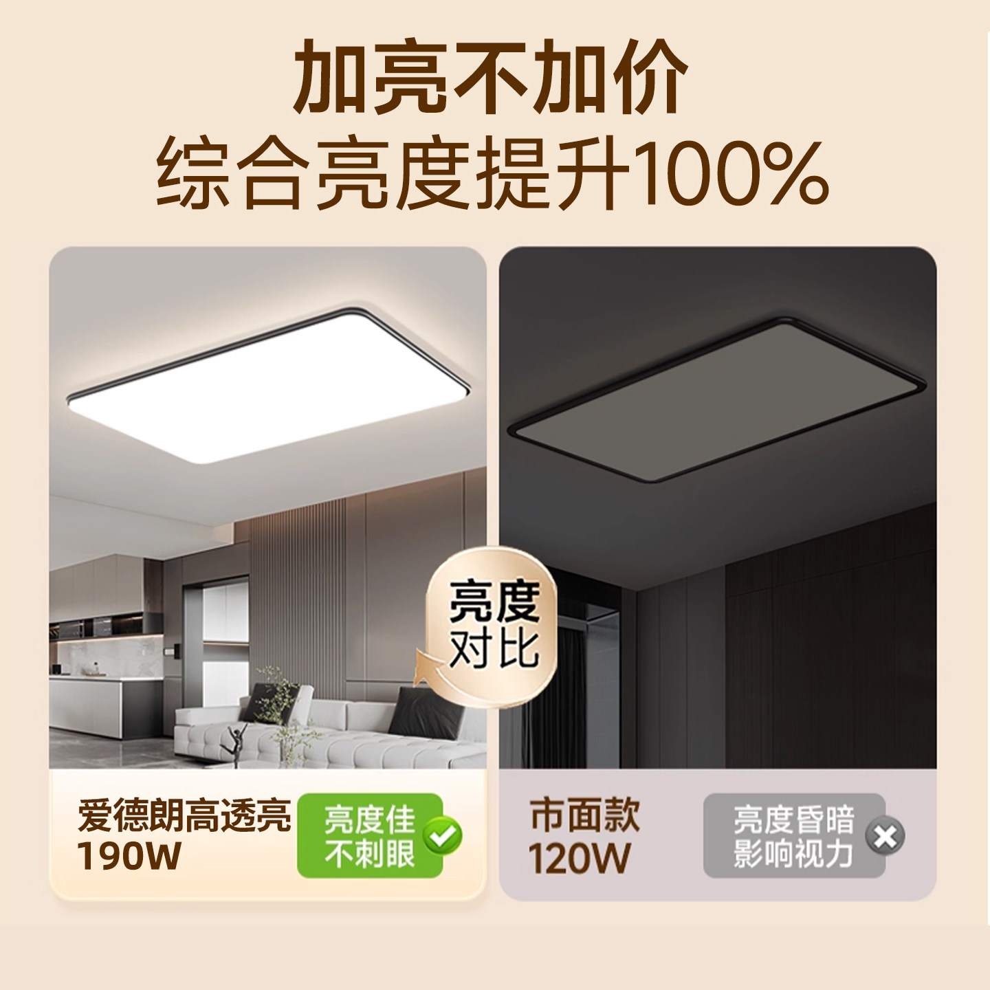 这款全光谱护眼客厅主灯LED吸顶灯,采用先进全光谱光源技术,高度还原自然光,有效减少蓝光危害,呵护家人视力健康。现代简约设计,线条流畅,外观大气,轻松融入各种家居风格。超高亮度搭配高透光面罩,光线均匀柔和,无频闪、无眩光,营造舒适明亮的居家环境。支持全屋套餐搭配,涵盖客厅、卧室、餐厅等多空间照明需求,一键打造健康光环境。安装便捷,节能省电,寿命长,是提升家居品质的理想选择。让每一次开灯,都成为对眼睛的温柔守护。