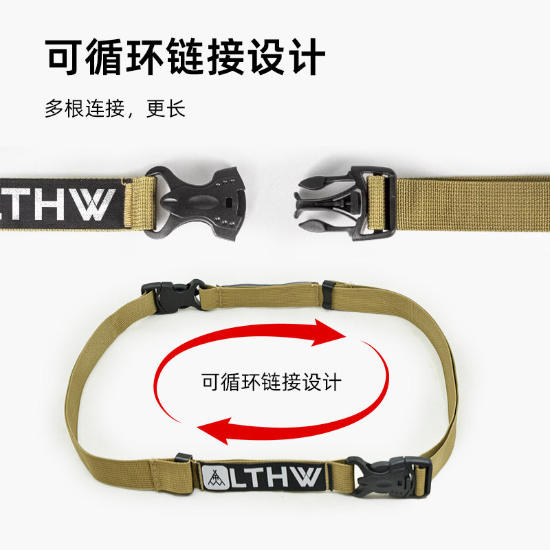 LTHW旅腾户外捆绑带是一款专为户外旅行、露营及日常收纳设计的多功能绑紧绳。采用高强度尼龙材质,耐磨抗拉,承重能力强,确保行李、帐篷、睡袋等装备稳固固定。配备耐用金属扣具,操作简便,可快速调节长度,适应不同物品捆扎需求。轻便易携带,防水抗UV,适合各种恶劣环境使用。无论是行李箱加固、货物捆绑,还是户外装备收纳打包,LTHW旅腾捆绑带都能提供可靠保障,提升出行安全与效率。是自驾、徒步、露营爱好者的实用必备工具,让户外生活更轻松有序。