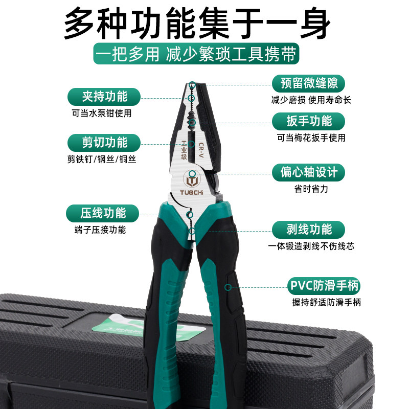 淘福冈老虎钳工业级高硬度可家用工业用克丝钳尖嘴款钢丝钳套装工具