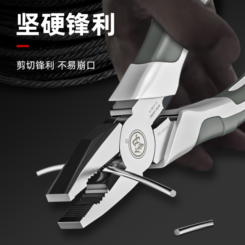 淘福冈老虎钳工业级高硬度可家用工业用克丝钳尖嘴款钢丝钳套装工具