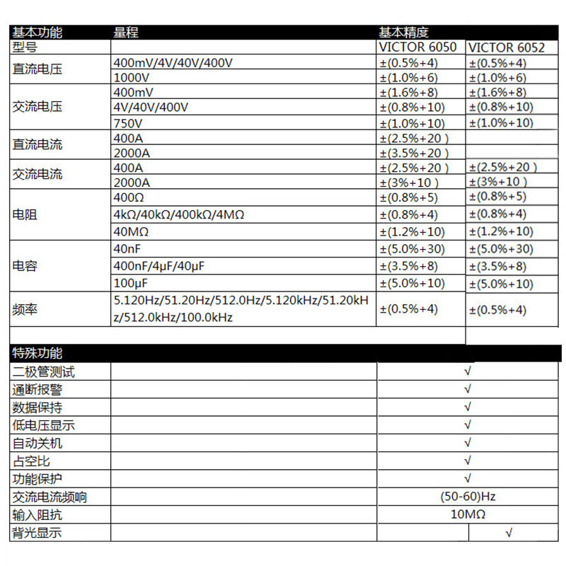 淘宝胜利钳形表万用表VC6050交直流2000A电流VC6052数字高精度全自动