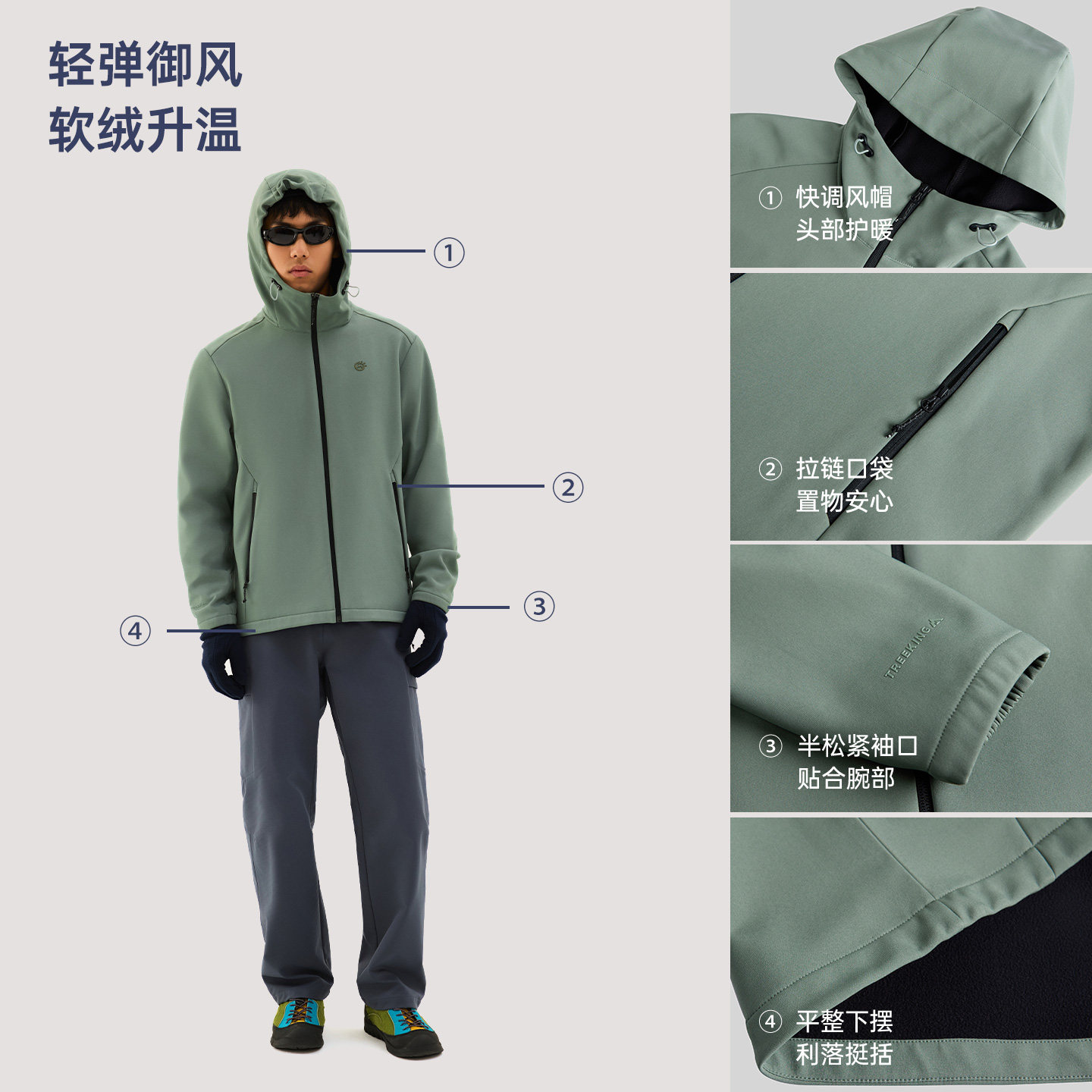 天猫TECTOP/探拓户外软壳衣男士秋冬保暖防风防泼水徒步登山连帽外套