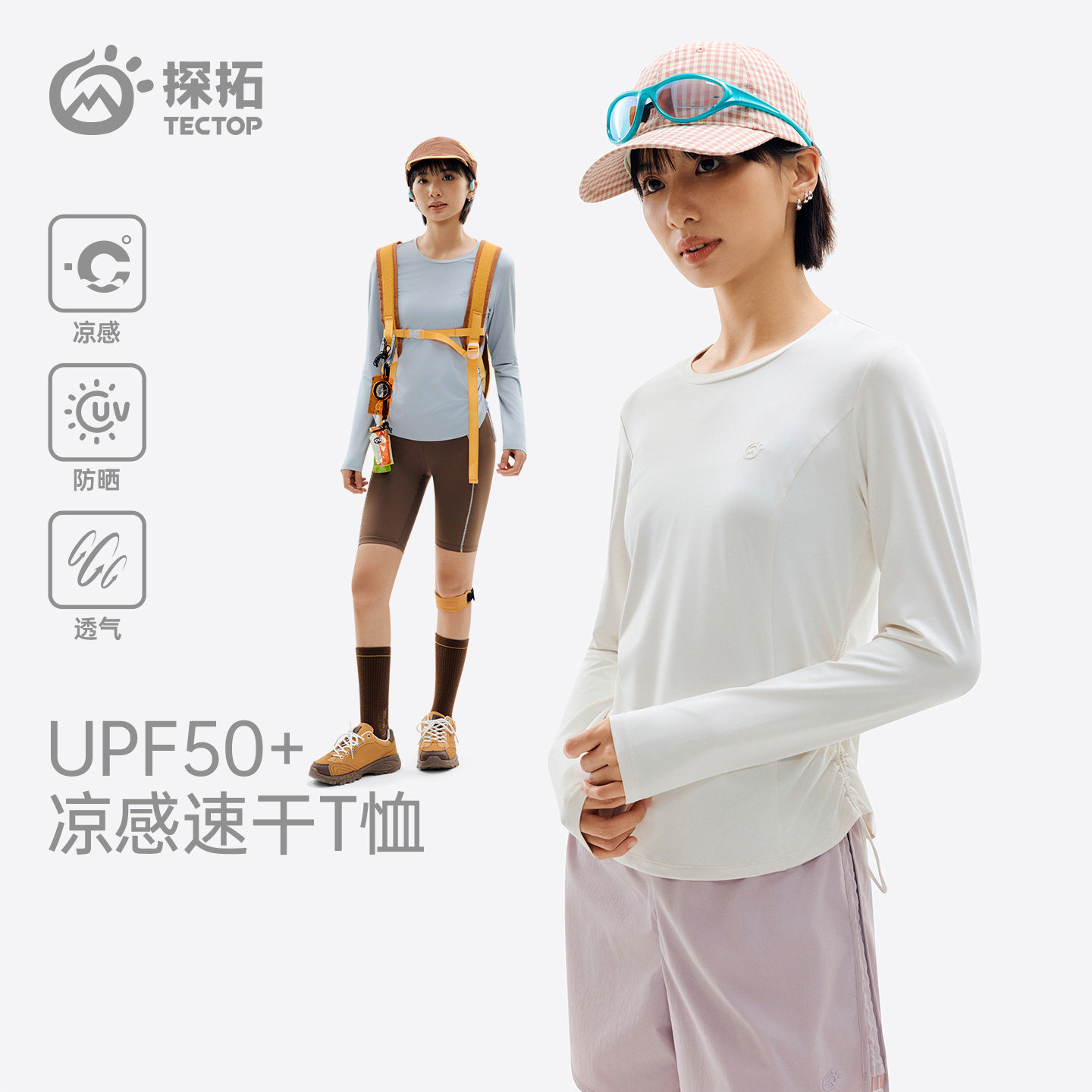 天猫探拓户外凉感速干T恤女士长袖冰肤防晒透气徒步瑜伽健身运动上衣