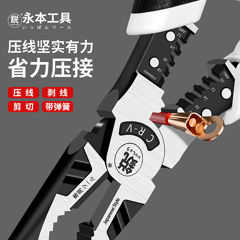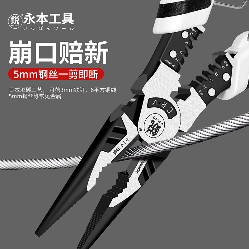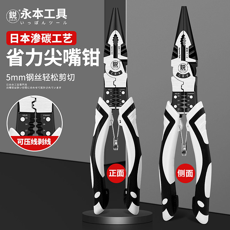 淘宝日本永本9寸强力可剪粗钢丝尖嘴钳多功能工业级弹簧尖嘴电工工具