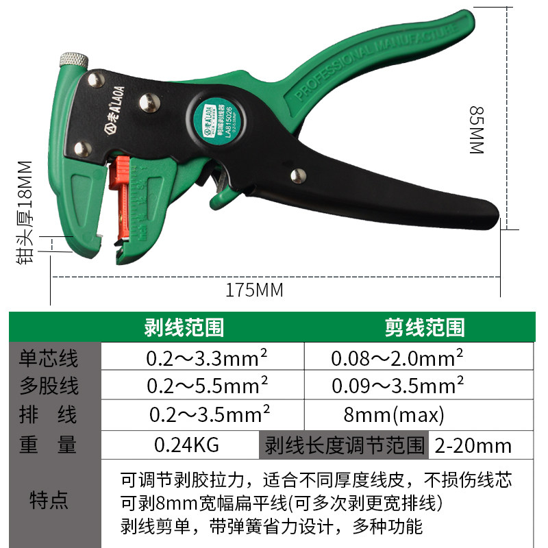 老a多功能剥线钳 全自动弹簧剥线钳快速剥皮电缆剪压线断线拨线钳
