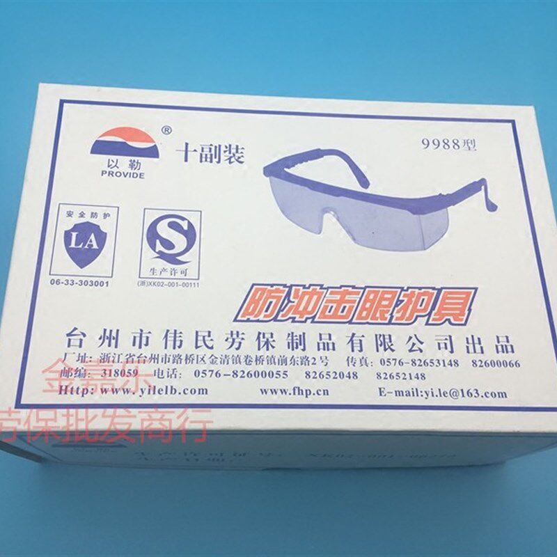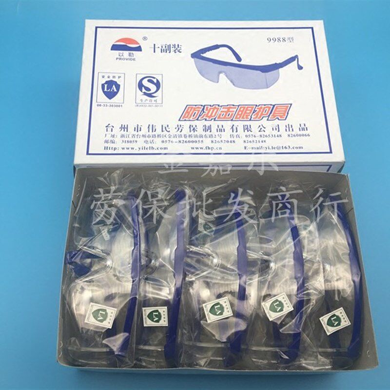 淘宝以勒9988蓝边透明防冲击眼镜工作护目镜防尘骑行施工Y安全防护眼