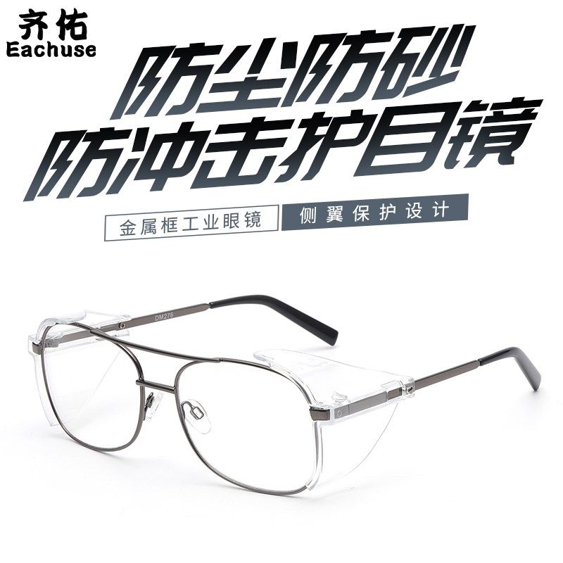 淘齐佑金属框防护眼镜防冲击安全眼镜护目镜可配近视镜老花镜实验室