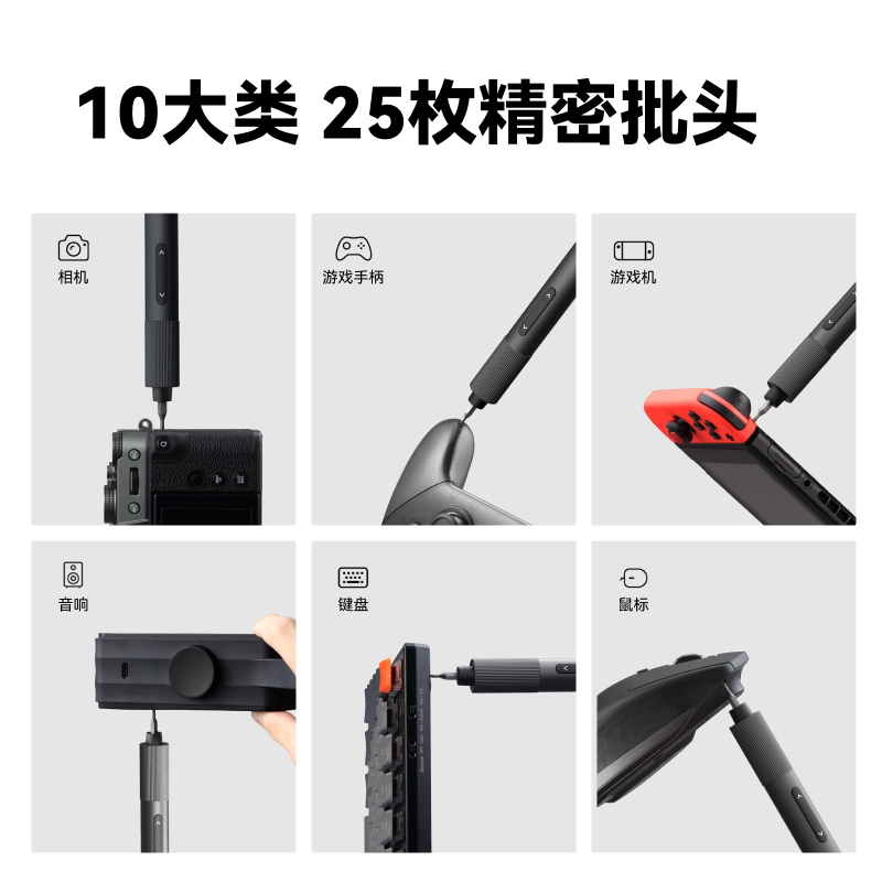 HOTO小猴工具精密电动螺丝刀是一款专为家用及数码维修设计的小型便携工具套装。它采用高扭矩无刷电机,搭配2000mAh锂电池,续航持久,支持Type-C快充。套装内含25枚高品质S2合金钢批头,覆盖PH00至T20等多种规格,适用于手机、电脑、相机、手表等精密设备的拆解与维修。人体工学设计搭配防滑握柄,操作舒适省力;智能扭力调节与正反转功能,有效防止螺丝滑丝。轻巧机身仅重约180g,便于随身携带。无论是科技爱好者还是维修新手,HOTO小猴都能让维修变得高效、安全又轻松,是居家必备的精密维修好帮手。
