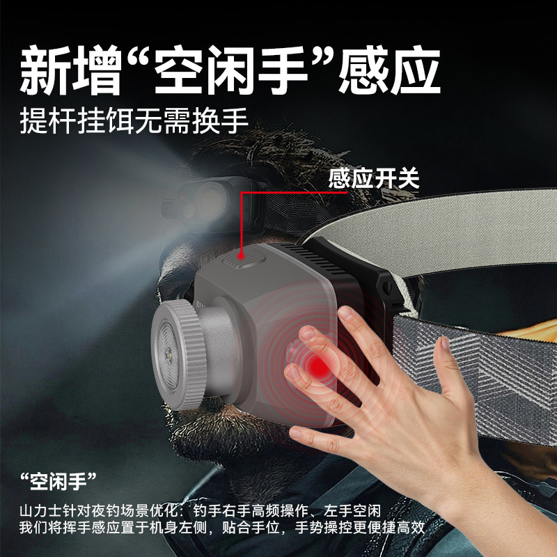 山力士夜钓头灯是一款专为夜间垂钓设计的头戴式照明设备,集强光、感应、可充电与无极调光于一体。采用高亮LED灯珠,提供超亮照明,有效照射距离远,光线均匀,确保夜间视野清晰。支持无极调焦功能,可自由调节光束聚散,适应不同垂钓环境。配备智能感应开关,挥手即可操控,操作便捷。内置大容量锂电池,USB充电设计,续航持久,使用无忧。轻量化头带设计,佩戴舒适稳固,适合长时间使用。防水防摔,适应户外复杂天气。无论是夜钓、露营还是户外作业,山力士头灯都是理想照明伴侣,照亮你的每一步。